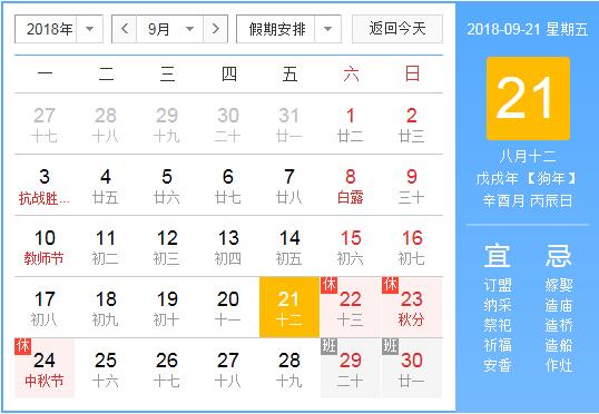 2018年中秋将至,按国家有关规定、结合公司相关制度,现就具体放假安排和要求通知如下: