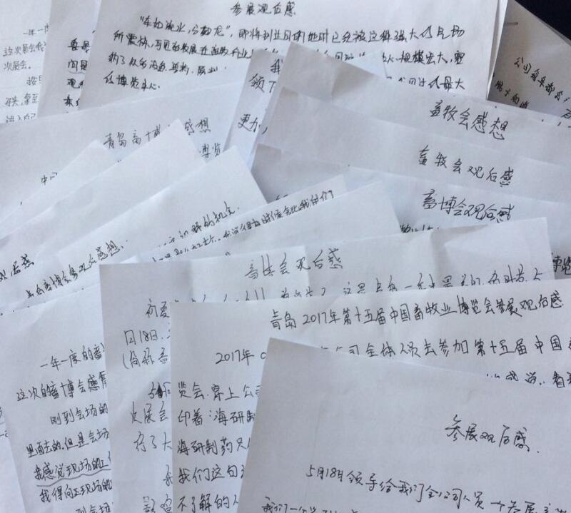 公司每位员工认真撰写了“展会观后感”,与大家共同分享了参观畜博会的切身感受。